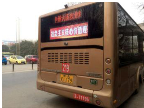 公交车尾后视窗LED 广告显示屏,支持flash、gif图像与文字格式,在满足商业广告传播的同时,播放与城市生活息息相关的预报、预警、标题新闻等信息,增强受众对媒体的依赖度,保持媒体活力。